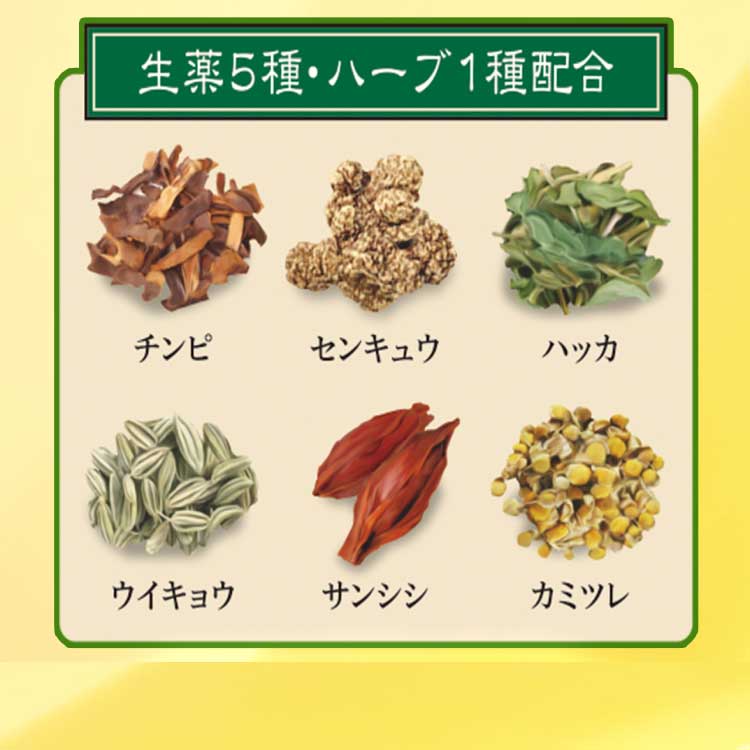 ウイキョウ、サンシン、センキュウ、チンピ、ハッカ、カミツレ