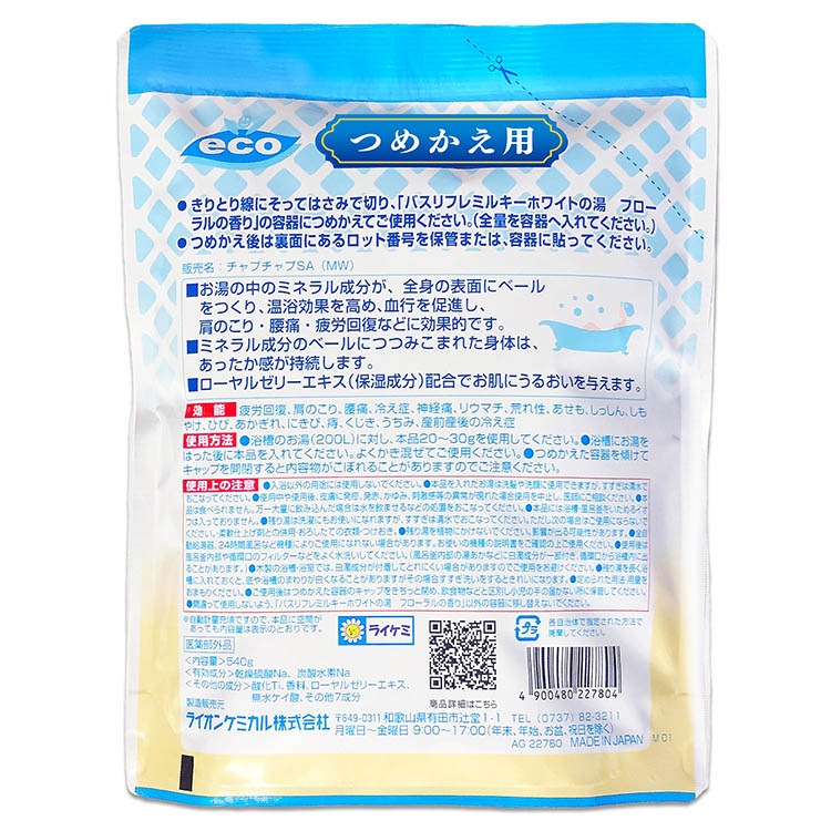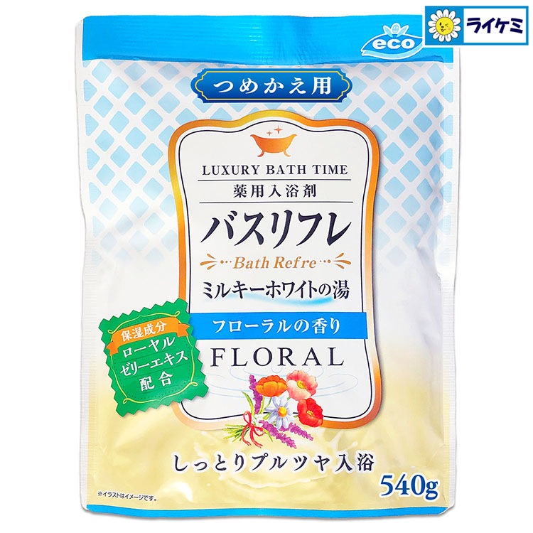 バスリフレ ミルキーホワイトの湯 フローラルの香り 薬用入浴剤 つめかえ用 540g