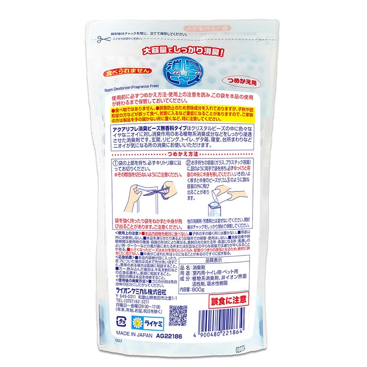 アクアリフレ 消臭ビーズ つめかえ用 大容量800g 無香料タイプ