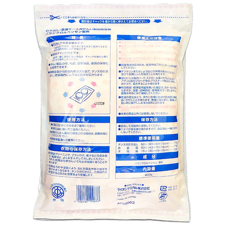 有効成分のパラジクロルベンゼンを柔らかい和紙で包装し、マルチ発散方式で上からも下からも効果を発揮して、大切な衣類を守ります。