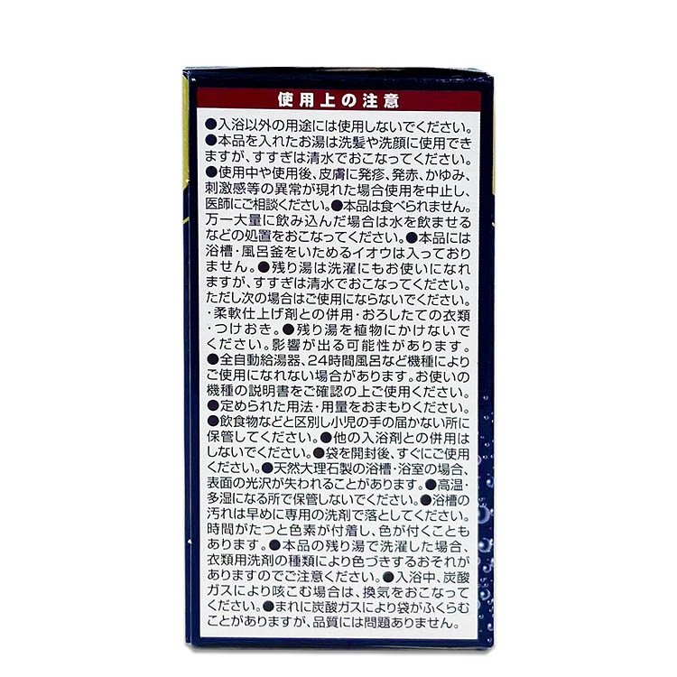 ●本品には浴槽・風呂釜をいためるイオウは入っておりません。
